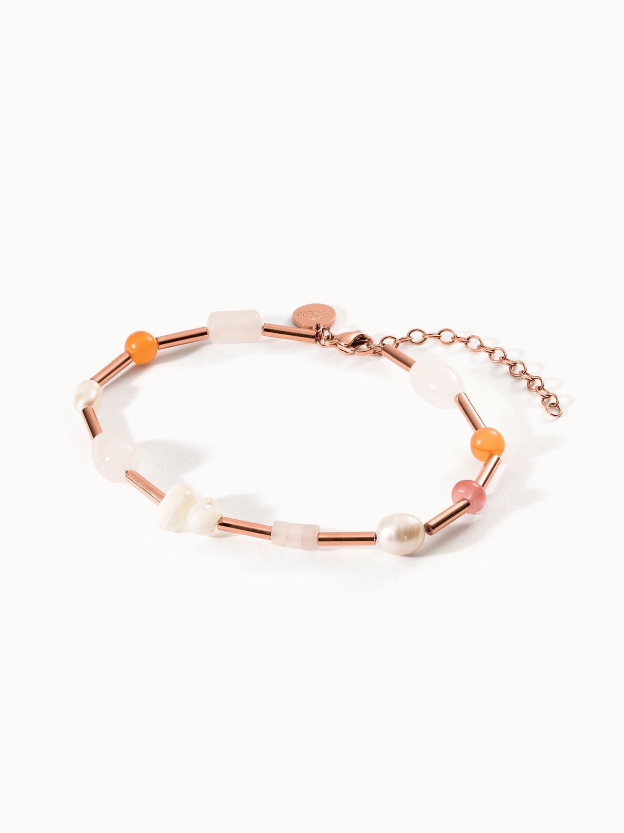 Roségoldenes Armband mit bunten Perlen und Muscheldetails von PURELEI.