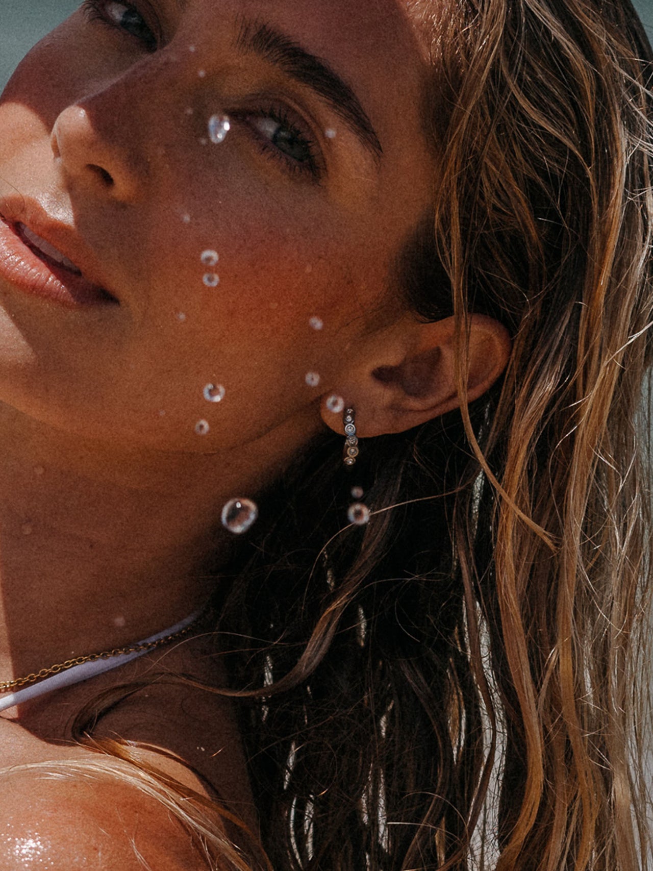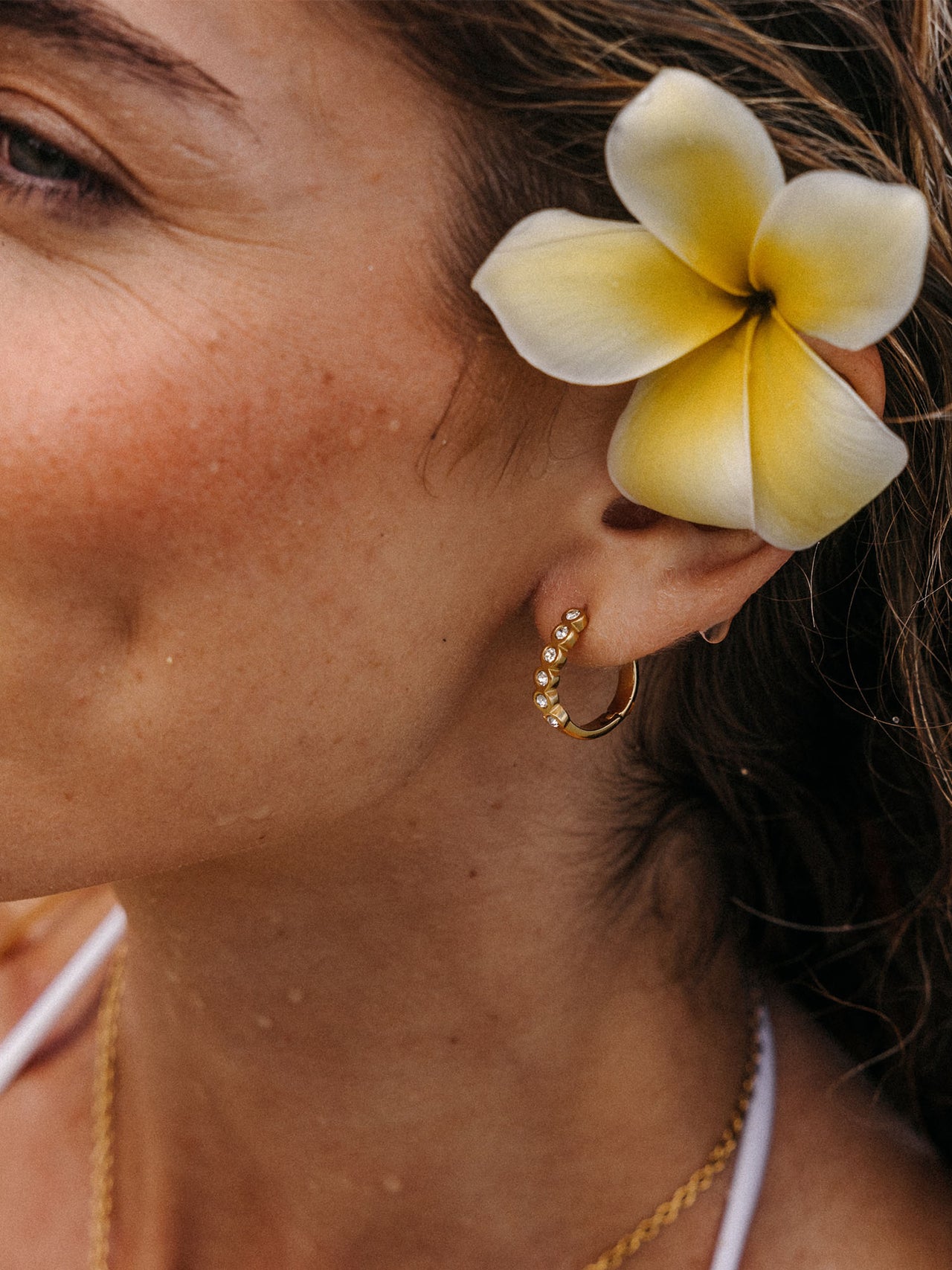Die in sich geschwungenen und mit sechs Schmucksteinen besetzten Creolen sind absolute Eyecatcher in Deinen Outfits. Die Reef Ohrringe sind vielseitig kombinierbar und perfekt für den Curated Ear Trend.