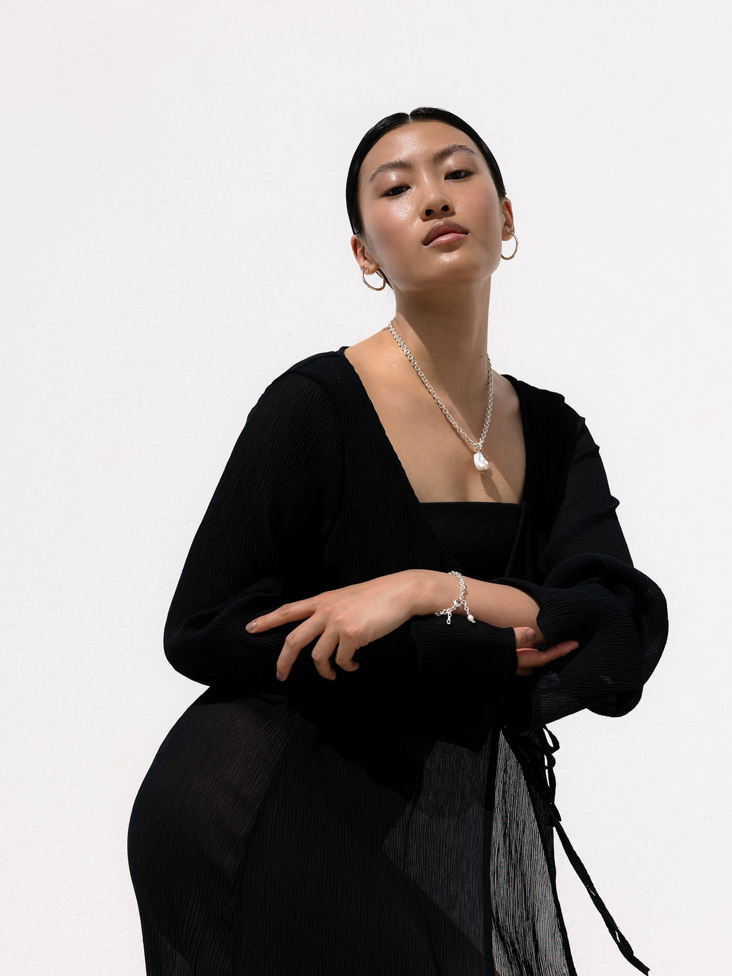 Dream Armband aus recyceltem Silber mit schimmernder Süßwasserperle, elegant getragen und pure feminine Ästhetik von PURELEI.