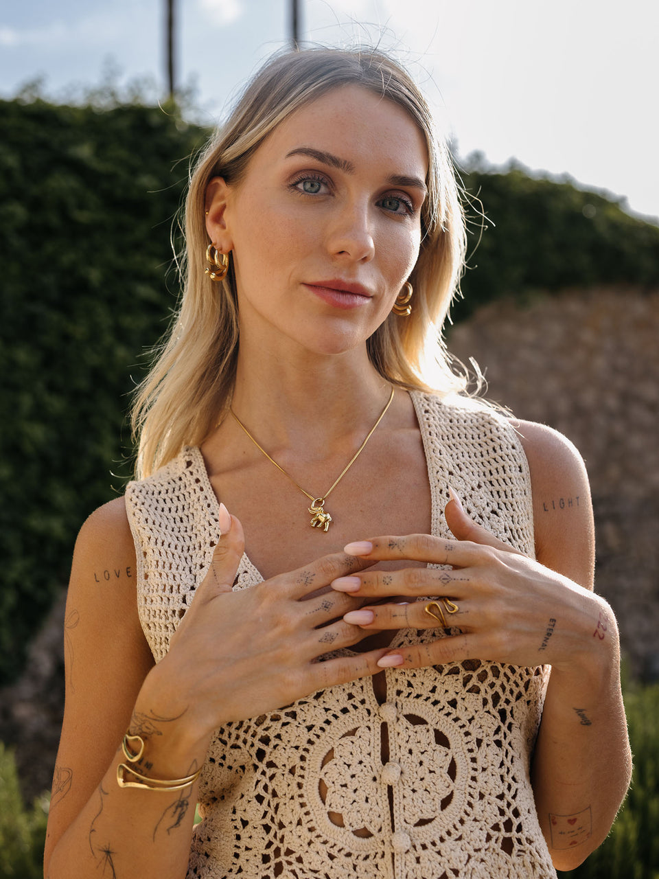Dein neuer Glücksbringer: Der Elefanten Charm hat einen funkelnden Schmuckstein als Auge und der nach oben geschwungene Rüssel des Elefanten – ein Symbol für Glück – dient gleichzeitig als stilvolle Öse für Deine Kette. Der Elefant steht für Stärke, Weisheit und innere Größe. Der Flowing Strength Charm ist ein täglicher Reminder daran, dass Du alles erreichen kannst, was Du Dir vornimmst.