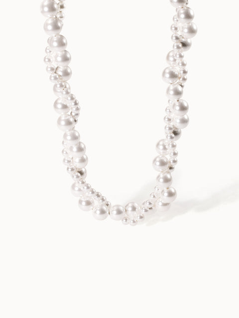 Layering: Kombiniere verschiedene Perlenschmuckstücke miteinander, zum Beispiel ein Pearly Ring und ein Armband. Entdecke unseren Pearl Set aus einer mit Perlen verzierten Kette und schimmernderen Ohrringen für einen modernen Layering-Look.