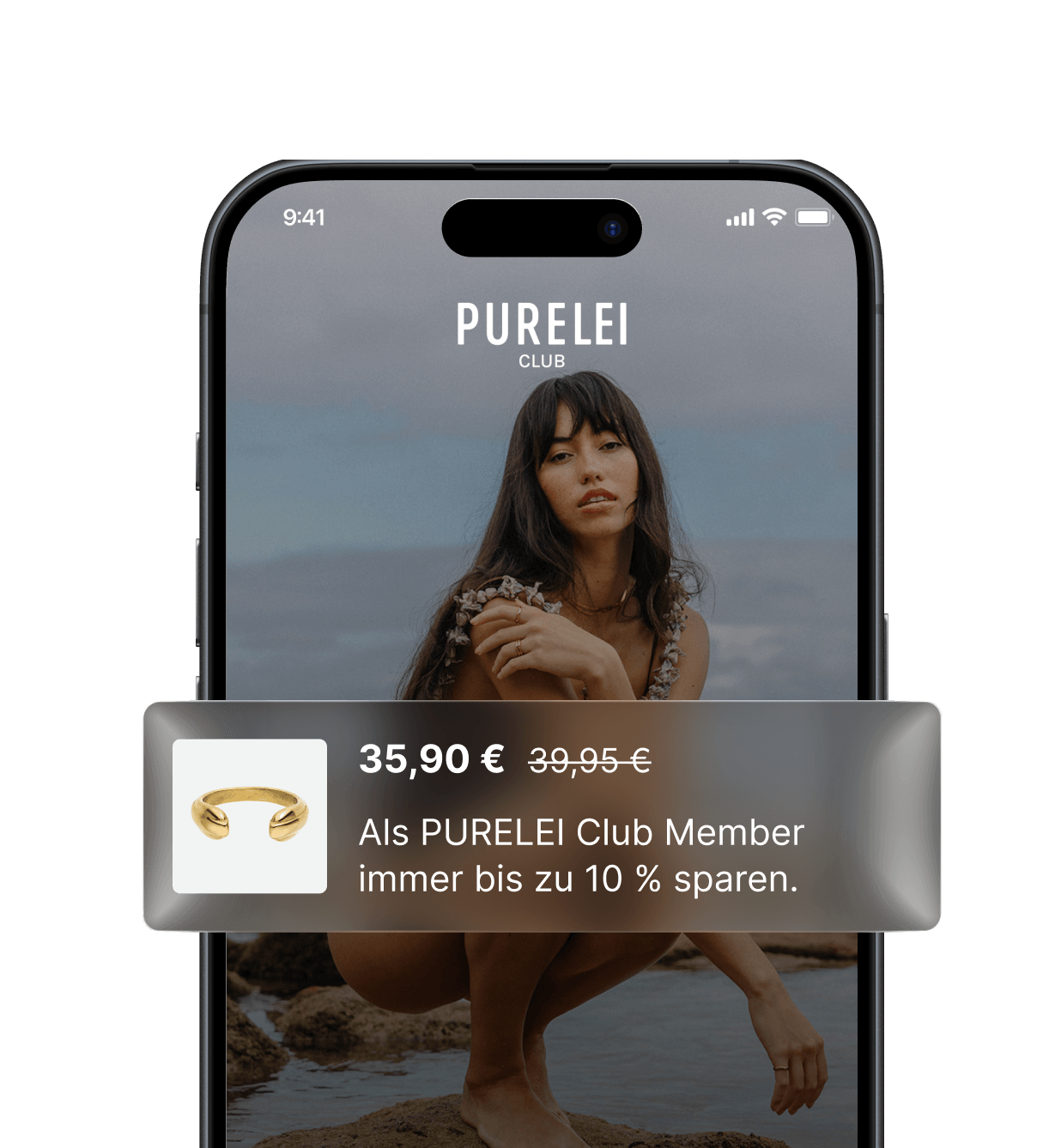 Als PURELEI Club Member genießt Du Preisvorteile in der App, auch auf bereits reduzierte Artikel oder bei Angeboten.